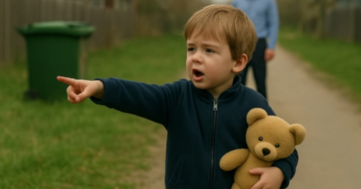 A la orilla de la calle estaba un niño de unos siete años, con una chaqueta sucia y un osito de peluche gastado entre las manos. Señalaba un contenedor de basura en medio de la calle.