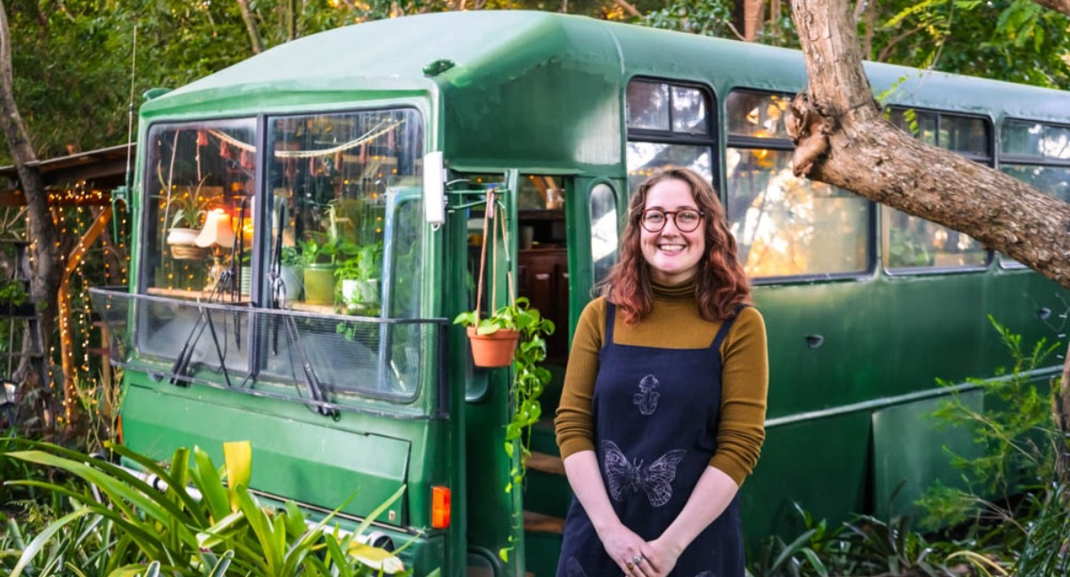Esta casa diminuta es verdaderamente única. Un viejo autobús, que ya no funcionaba, ha sido cuidadosamente trasladado a un pintoresco terreno, donde se ha transformado en un acogedor retiro para artistas, escondido entre los árboles.