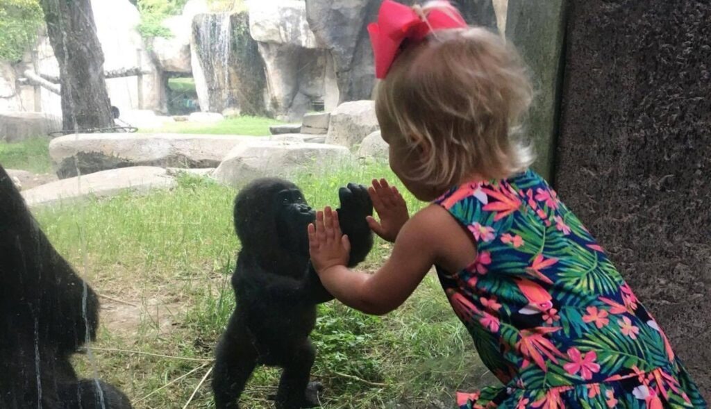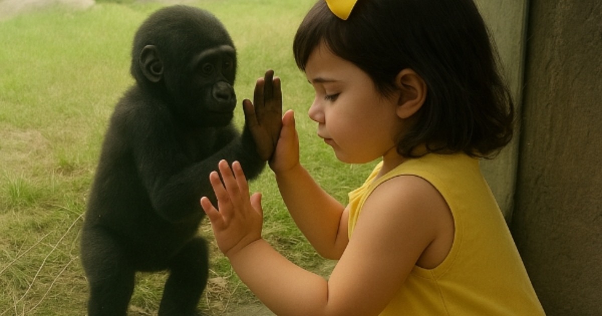 El gorilito dio un paso hacia ella y tocó el cristal con su manita diminuta.