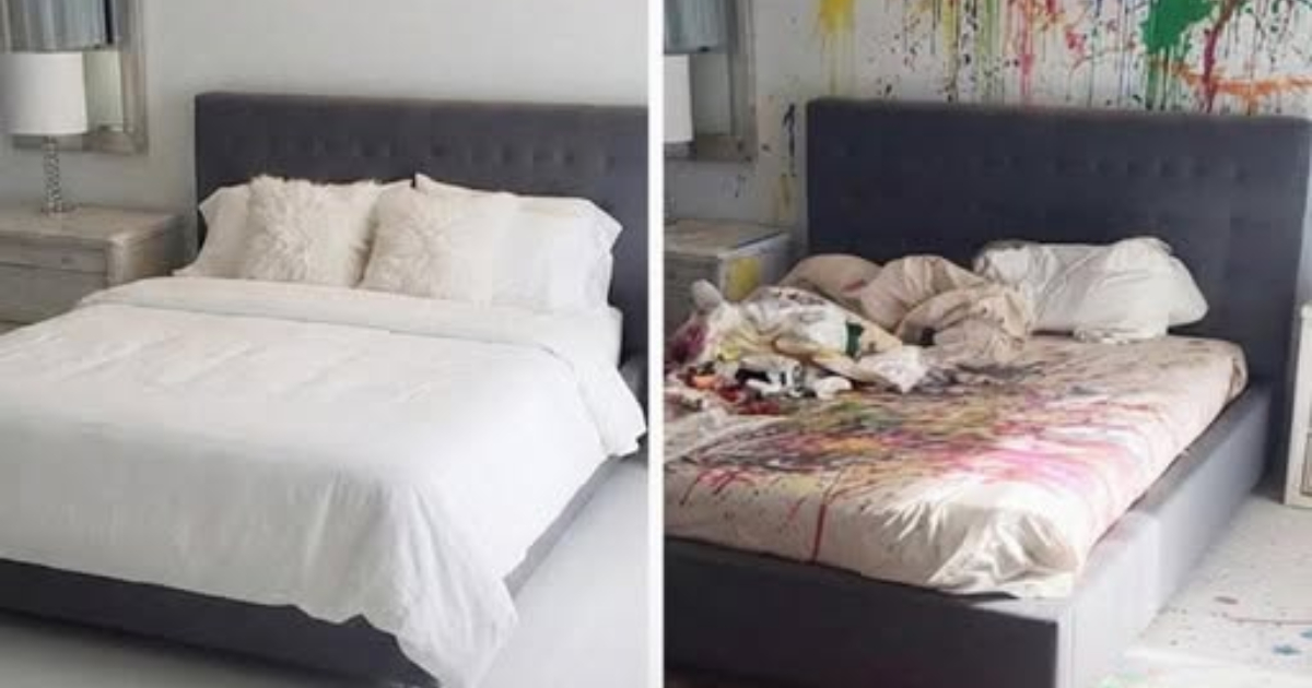Entonces llamó Claire, pidiéndome cuidar a sus hijos unas horas debido a una emergencia laboral inesperada. Acepté con gusto, emocionada por pasar tiempo con mis sobrinos, sin imaginar el caos que vendría. Noah y Jake comenzaron de inmediato a construir un castillo de Lego, mientras yo preparaba la cena, confiando en que se comportarían. Cuando fui a verlos, la sala estaba vacía y unas franjas de color brillante me guiaron hacia una escena impactante: tres habitaciones—el cuarto de invitados e incluso el dormitorio principal—cubiertas de pintura caótica y multicolor. La alfombra nueva y los muebles estaban arruinados, y los niños se paraban orgullosos en medio del desastre, convencidos de que habían hecho algo hermoso.