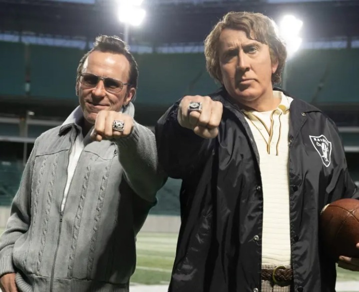 Las nuevas fotos de Bale en el set llegaron poco después de que el estudio publicara una imagen preliminar de él y Cage en personaje. La foto muestra a los dos ganadores del Oscar en un campo de fútbol, mostrando sus anillos del Super Bowl a la cámara. Mientras Bale encarnaba perfectamente a Al Davis, la transformación de Cage en John Madden, usando un traje de gordura para interpretar al entrenador convertido en comentarista de la NFL, dejó a los fans igualmente impresionados y sorprendidos.
