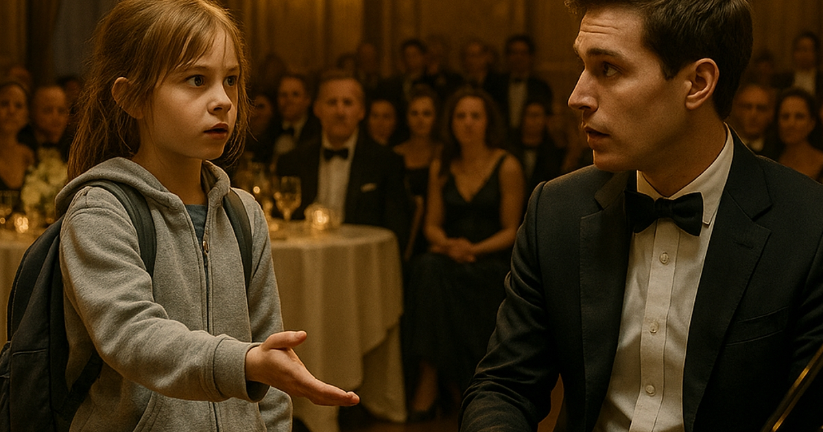 El salón de baile brillaba como un mundo al que Amelia jamás había pertenecido. Las lámparas de cristal lanzaban destellos sobre los vestidos de seda y los zapatos lustrados; en el centro, un piano de cola resplandecía bajo la luz. Descalza, abrazando su mochila raída, Amelia observaba ese universo que parecía hecho de otro aire.