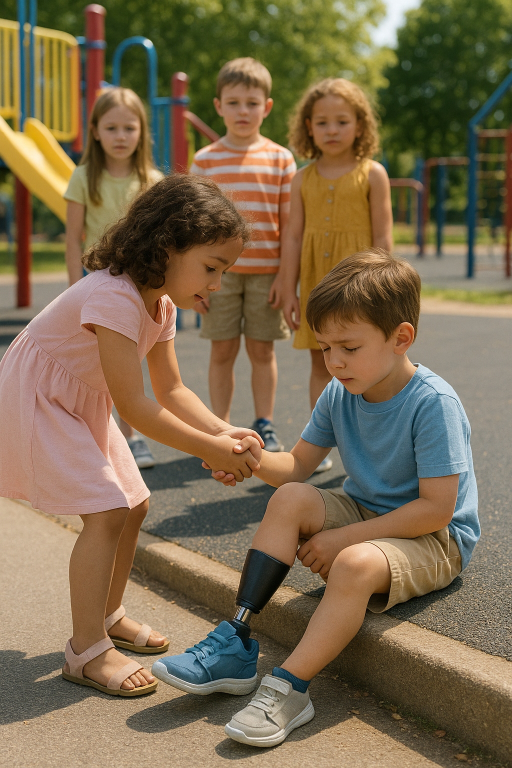 Ethan, de doce años, hijo del constructor más rico de la ciudad, caminaba con la cabeza baja. Cada clic de su prótesis le dolía como un golpe en el corazón. Ni el uniforme caro ni su apellido famoso podían ocultar lo que era evidente: él era “diferente”. — Eh, chico de metal, ¿ya se te acabaron las pilas? — gritó uno de los abusones. Ethan solo encogió los hombros, deseando desaparecer. Pero entonces, una voz firme se escuchó por encima de las risas: — Déjenlo en paz. La multitud se apartó. Delante de ellos estaba una niña con piel oscura y zapatillas gastadas. — ¿Y tú quién eres? — bufó uno de los chicos. — Su amiga, — respondió ella con calma. Esa palabra — amiga — resonó en Ethan como un regalo inesperado. Así comenzó su amistad.