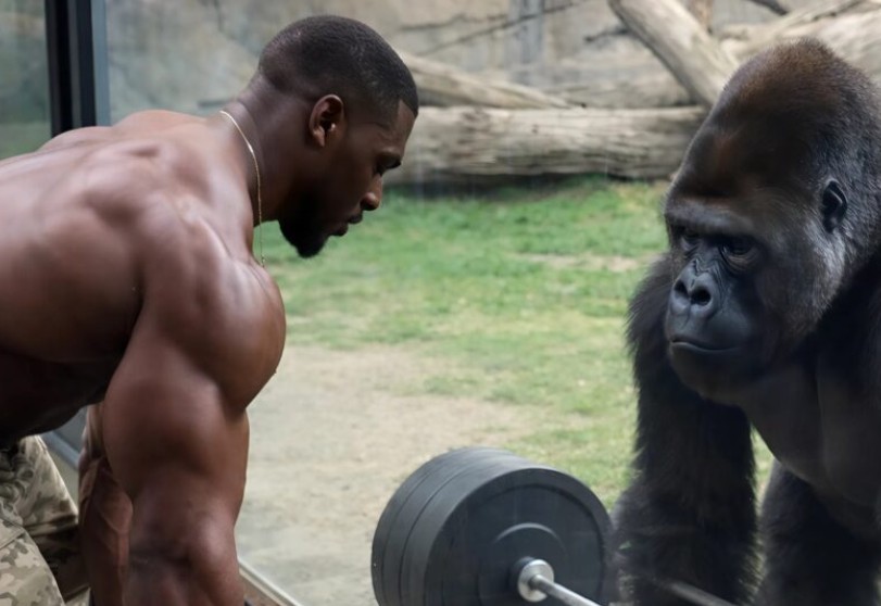 Este deportista, conocido por su fuerza y por subir constantemente videos extremos en redes sociales, pensó que había tenido una idea “genial”: desafiar a un gorila. Sabía que el enorme animal tras el vidrio tenía la fuerza natural para levantar cientos de kilos sin esfuerzo. Su plan era simple: primero levantar él mismo la pesada pesa y luego esperar que el gorila lo imitara, soñando con millones de reproducciones y fama instantánea.